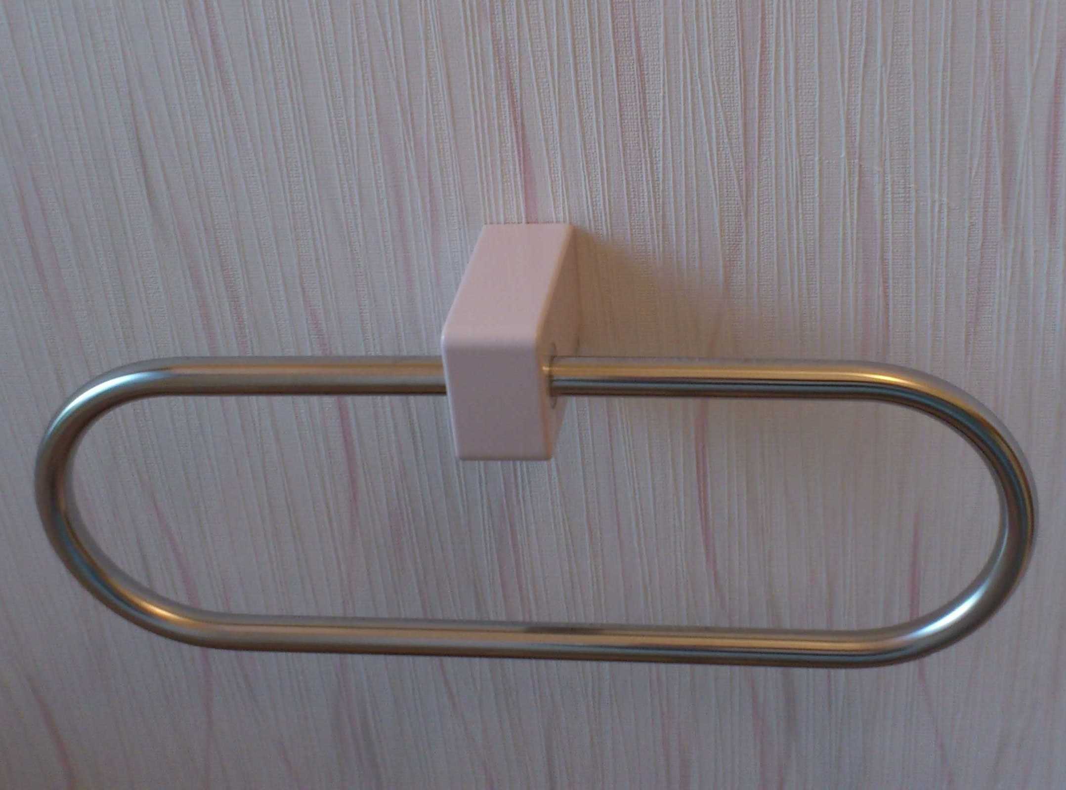 | 当店では、毎回、そうしているのですが、、、ペーパーホルダーやタオルリングにもこだわります!ジャーン!タオルリングです!ワンポイントではありますが、やっぱり同系色だと素敵です!ピンクのラインが入ったクロスにも最高の相性です! | ペーパーホルダーです。当店でペーパーホルダーを頼むと通常はコレ!2連棚付きペーパーホルダー!!写真などの軽い物や文庫本ぐらいなら余裕で載ります!とても便利で使いやく、お色も便器と合わせられるので凄く評判が良いんです! |
